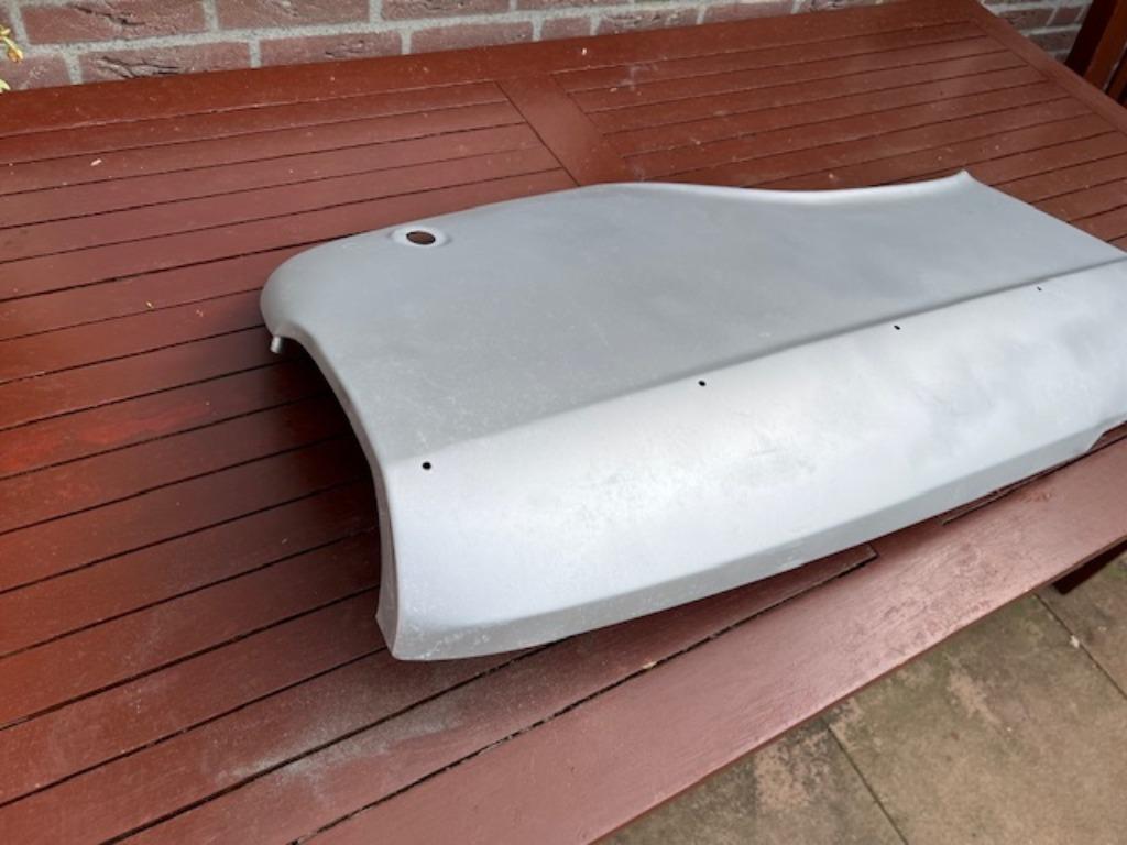 Aangeboden een nieuw achterscherm voor een peugeot 304 sedan, de buitenzijde is behandeld met zinkspray.