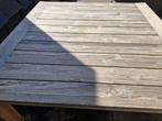 Een nog nette teak houten tuintafel voor 8 personen. 1 Plank is slecht en al een stuk tussen gezet. Maten zijn: 1.70 Bij 1.70 En de hoogte is 76 cm.