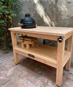Mooie kamado barbecue, compleet met een stevig en stijlvol douglas houten frame. Ideaal voor de serieuze buitenkok. De kamado is in goede staat en het frame biedt voldoende ruimte voor accessoires en