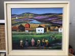 Een zeer kleurrijk olieverf op hardboard schilderij in goede staat. De structuur van het hardboard maakt het schilderij levendig e