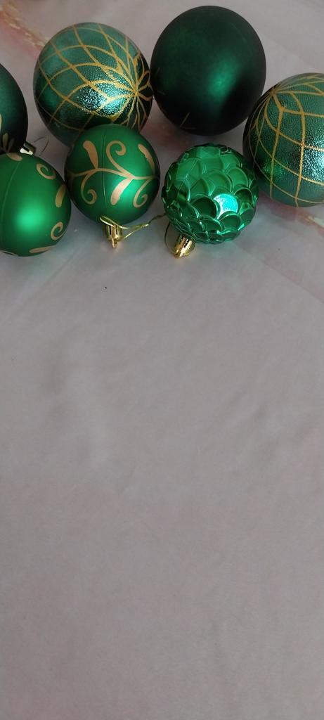 Van de groene kerstballen zitten nog zo 2 a 3 nieuwe in doos ook onbreekbare kerstballen groen . Die mogen weg voor 7 euro alle dozen.