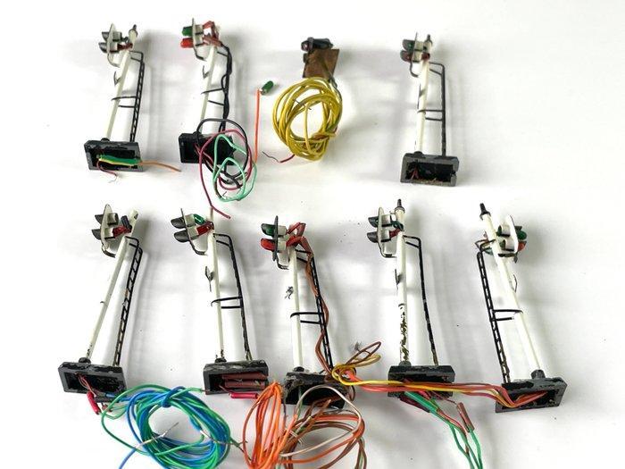 Brand Onbekend zelfbouw in schaal H0; negen Hollandse seinpalen met acht metalen seinen en één dwergsein, niet getest.
