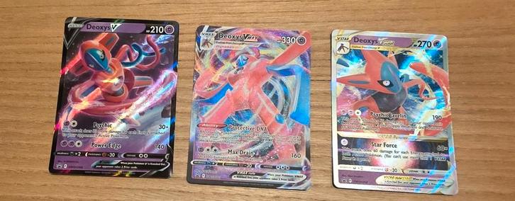 Een leuke Deoxys V, VMax en Deoxys Vstar pokemon kaart.