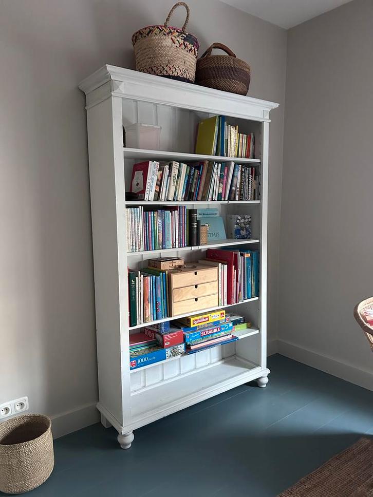 Mooie, stevige boekenkast van geschilderd grenenhout. De kast heeft 5 verstelbare planken, waardoor je de indeling naar eigen wens kunt aanpassen.