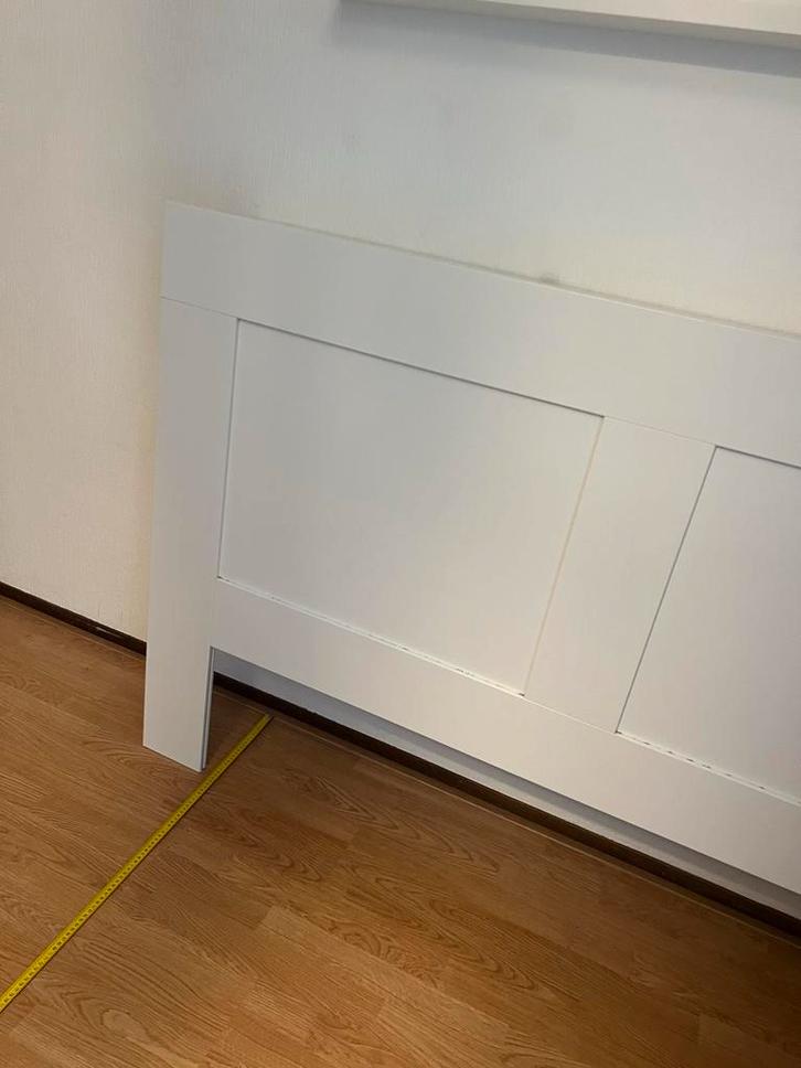 Stijlvol wit hoofdbord met handige opbergruimte aan de zijkant. Ideaal voor het opbergen van boeken, een wekker of andere persoonlijke spullen. Het hoofdbord is geschikt voor een tweepersoonsbed. Afmetingen: 166 cm breed, 111 cm hoog. In goede staat.