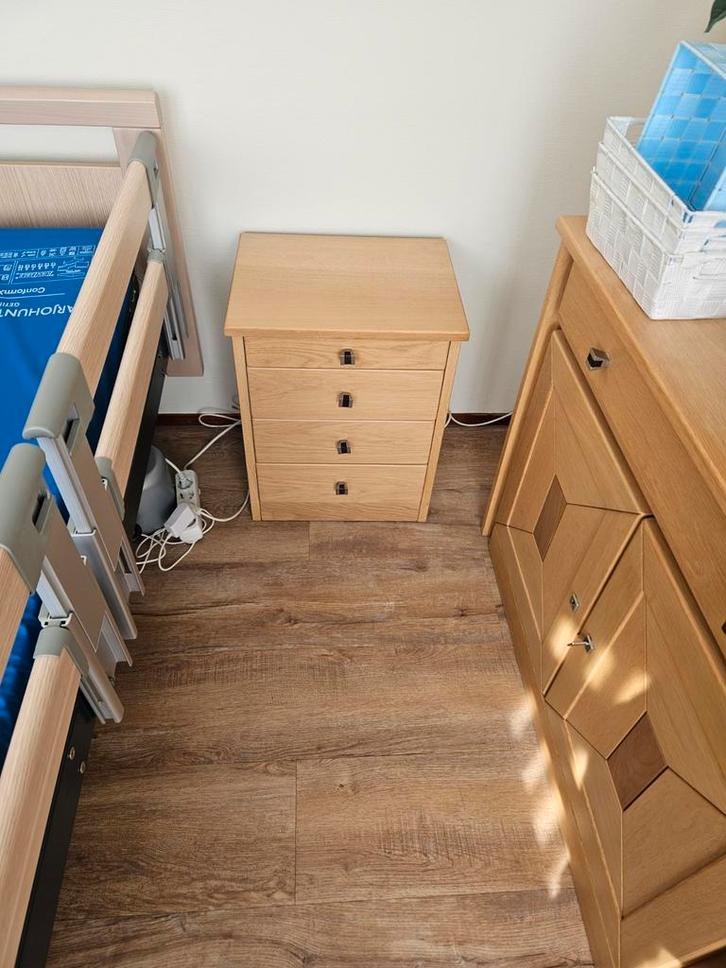 Set van diverse houten kastjes. Ideaal als nachtkastje, bijzettafel of voor extra opbergruimte. De kastjes zijn in gebruikte staat en hebben een mooie uitstraling. Afmetingen variëren. Zie foto's voor details.