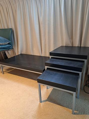 Ikea Salontafel + Bijzettafels - Zwart/AluGratis
