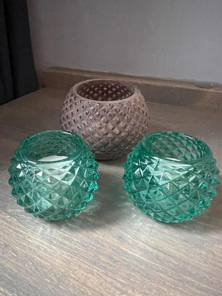 3 glazen theelicht houders.