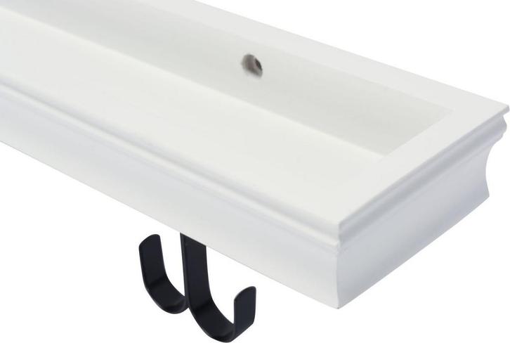 Dit panel met haken kan aan de muur opgehangen worden. Het kan op meerdere manieren gebruikt worden, bijvoorbeeld om een kapstok en sleutelkastje te vervangen of om handdoeken op te hangen en badkamer producten op te bewaren. Het verdiepte paneel kan door middel van onzichtbare montage eenvoudig zelf worden opgehangen. Met de producten van Duraline kan iedere muur in een opbergruimte worden omgetoverd! De Duraline producten zijn een stijlvolle toevoeging aan uw interieur. MDF , 80 x 9,3 x 4 cm (lxbxh), Algemeen, Afmetingen, 80 x 9,3 x 4 cm (lxbxh), Kleur, Wit, Materiaal, MDF, Gewicht, 2 kg,