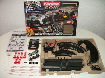Prachtige Carrera Go Formule 1 racebaan van 9.0 meter met Red Bull en Ferrari, in de baan zitten kruiswissels, loopings, spectaculaire schuine wandbocht en 180 graden kombocht. Helemaal compleet, alle baansteunen, vangrails, clips enz. en handleiding zit erbij, zie fotoos 7 tm 11. Vaste prijs voor deze baan is 29.99 Euro.