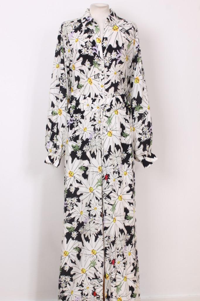 Wit met zwart, wit, geel, rood en lila gebloemd.